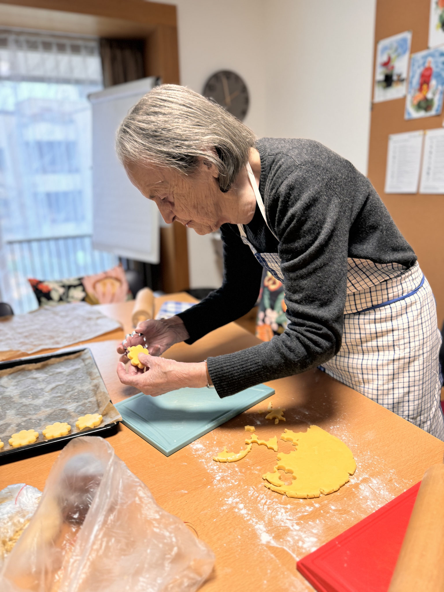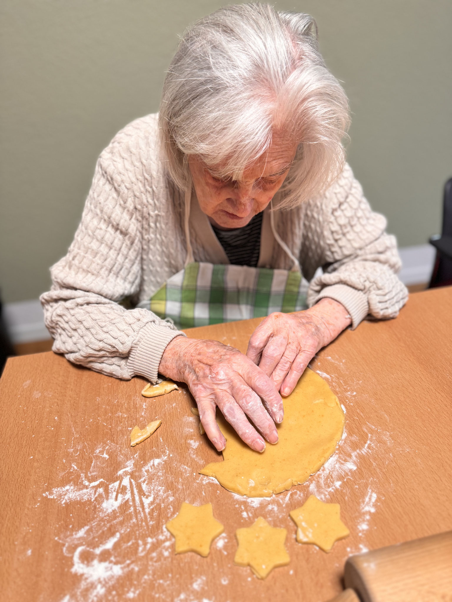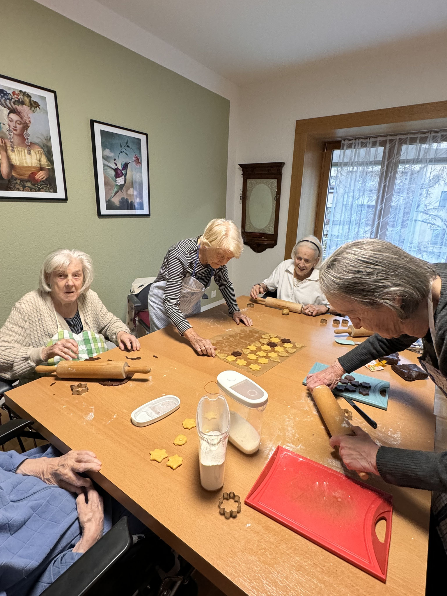 Was darf in keiner Adventszeit fehlen? Natürlich das gemeinsame Guetzli backen. Die Bewohnerinnen und Bewohner haben sich im Treffpunkt zusammengefunden und eifrig Brunzli, Mailänderli und weitere Leckereien hergestellt. Es wurde geknetet, ausgestochen und natürlich auch genascht, bis sich alle Guetzlidosen gefüllt haben.