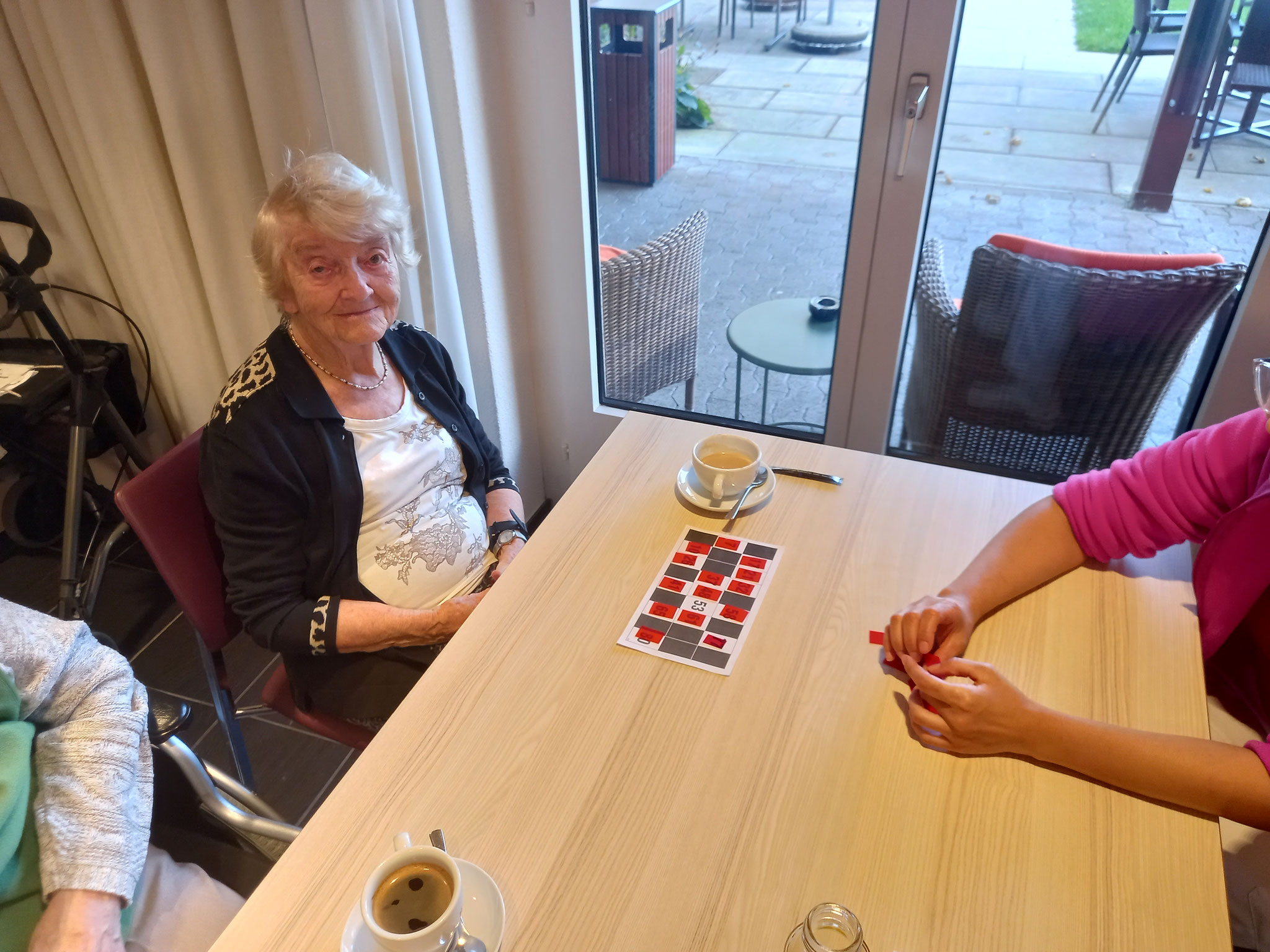 1...2...3...Lotto! In regelmässigen Abständen finden sich unsere Bewohnerinnen und Bewohner in der Cafeteria zum Lottonachmittag zusammen. Lidija führt durch den spannenden Nachmittag und die Gewinnerinnen und Gewinner freuen sich über Preise, die das Herz erfreuen.