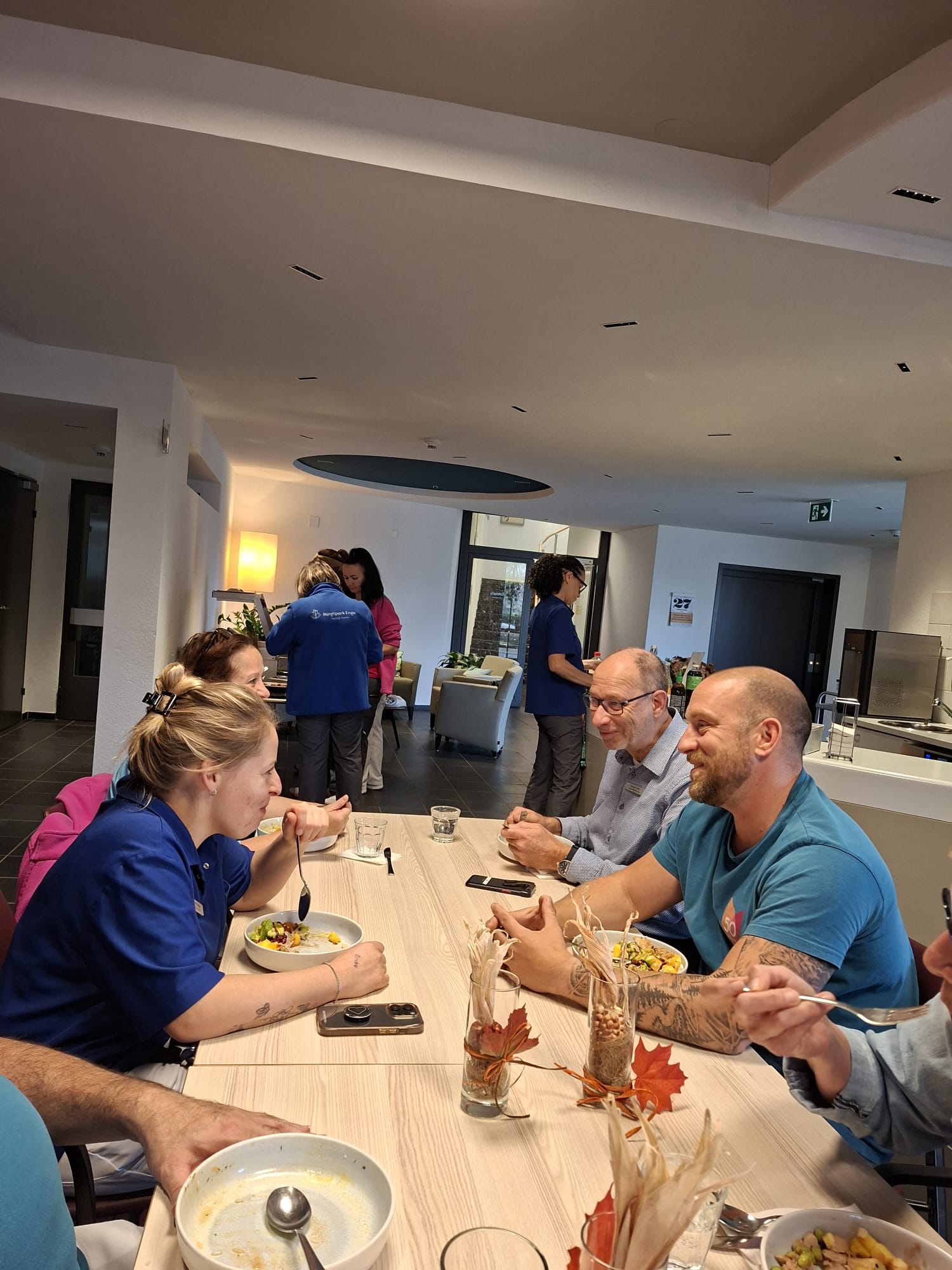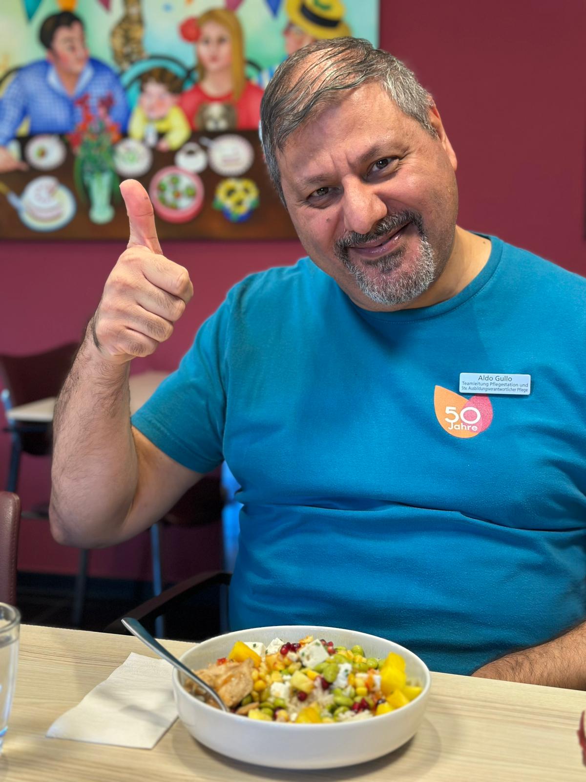 In regelmässigen Abständen werden die Mitarbeitenden zur Tavolata eingeladen. Die Küche zaubert uns jeweils ein grossartiges Buffet, an dem sich alle Mitarbeitenden grosszügig bedienen dürfen. Heute gab es Poke Bowl und ein Teller sah besser aus als der andere. Ein richtiger Gaumenschmaus. Gegessen wir an der grossen Tafel, wie es der Name sagt: Tavolata! Vielen Dank an die Küche für dieses gelungene Mittagessen!