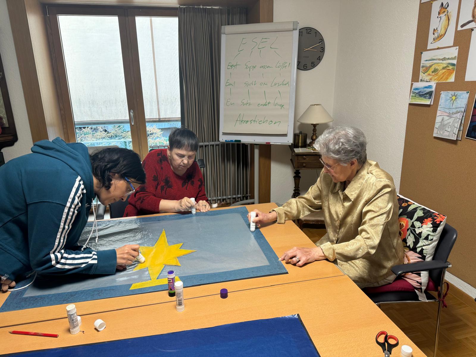Im Rahmen des Projekts Adventsfenster des Quartiervereins Enge gestalteten wir gemeinsam ein Adventsfenster. Mit viel Kreativität und Engagement entstand ein liebevoll dekorierte Fenster, das am 11. Dezember geöffnet wurde. Das Fenster sorgte in der Adventszeit für Licht, Wärme und vorweihnachtliche Stimmung. Das Projekt bot eine schöne Gelegenheit für Begegnungen, Austausch und gemeinsames Wirken und wurde von den Bewohnenden mit grosser Freude umgesetzt.